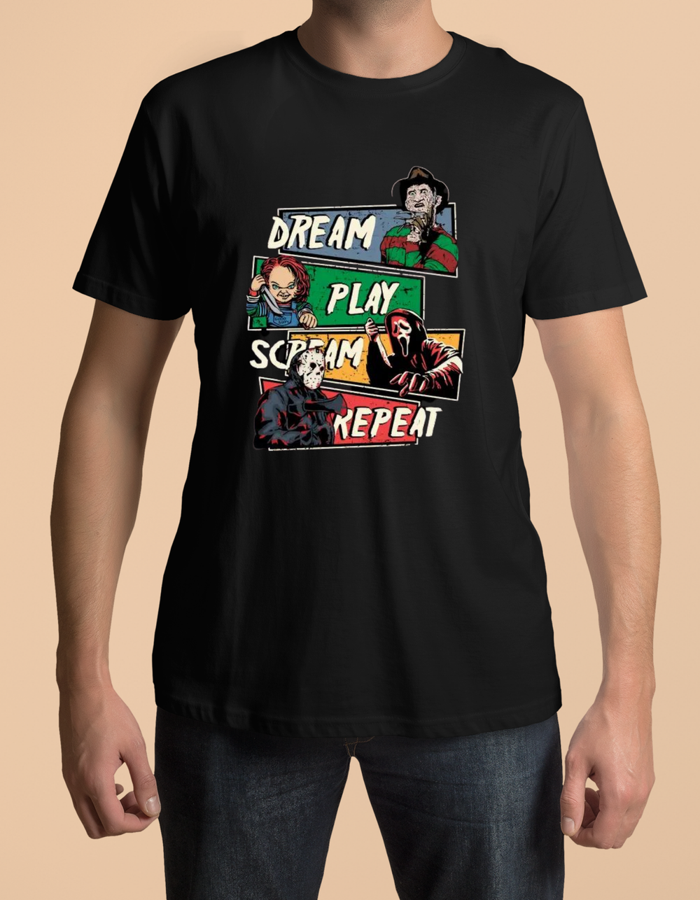 Dream Play Scream Repeat Halloween Theme Print Adult Unisex Regular Fit T-shirt